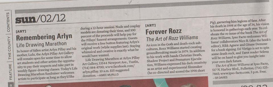 We also had Tarot Reader Selena on hand and DJ Virtigo spinning your favorite Deathrock tunes. Rikk Agnew and Terri Kennedy at The Art of Rozz Williams Ipso Facto Event O.C. Weekly Write up on The Art of Rozz Williams Ipso Facto Event Gitane Demone and Terri Kennedy at Art of Rozz Williams Ipso Facto Event Rikk Agnew and Terri Kennedy at The Art of Rozz Williams Ipso Facto Event Gitane Demone and Terri Kennedy at Art of Rozz Williams Event Selene Tarot Reader and Terri Kennedy at Art of Rozz Williams Ipso Facto Event Art of Rozz Williams Flyer for this Event