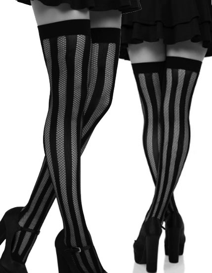 6225 -Leg Ave black net and opaque striped thigh high stockings. One size $10.50