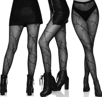 9724 -Leg Ave black cracked fishnet tights/pantyhose. One Size $10.50
