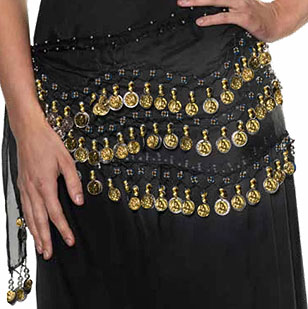 31041 -Brass coin black belly dance scarf belt. $14.50