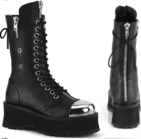 bolt250 - Pleaser/Demonia black vinyl vegan mid calf Bolt combat boot with 1 1/4 inch heel. $118.00
