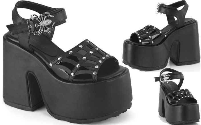 camel17 - Pleaser/Demonia black pu shunky 5 inch heel 3 inch platform Camel spiderweb open toe spider buckle sandal shoe. Womens 8. $100.00