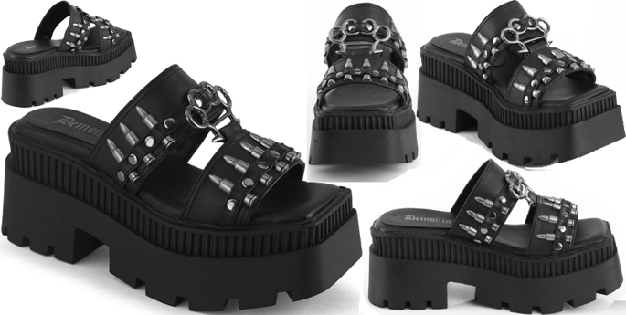 wrath08- Demonia/Pleaser 1 1/4 inch chunky heel square toe platform slide black pu Wrath sandal. $82.00