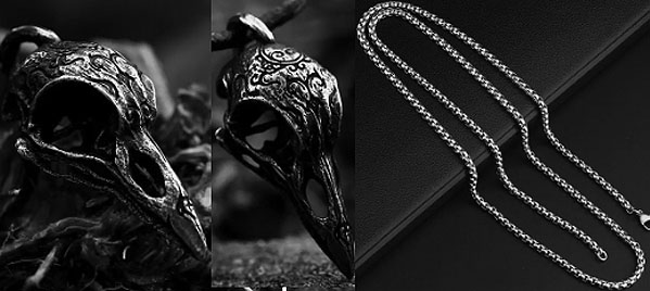 p898-Alchemy of England fine English pewter Volvan Ravenskull necklace. $46.50