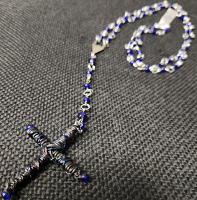 ywyjp2408a-Volcanic black agate/gallstone cross rosary necklace. $13.50