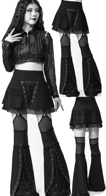 7330 -Contrast fishnet laced skirt with detachable leg warmers.Medium $111.50