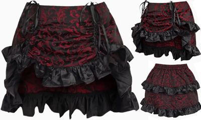 acc108 - Daisy black/red ruched brocade bustle mini skirt. Medium/Regular size. $61.50