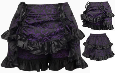 acc252 - Daisy purple black brocade ruched mini bustle skirt. Medium/Regular size. $61.50