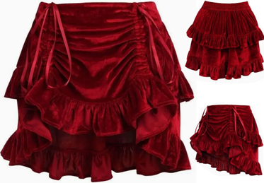 acc282 - Daisy red ruched velvet bustle mini skirt. Medium/Regular size. $56.50