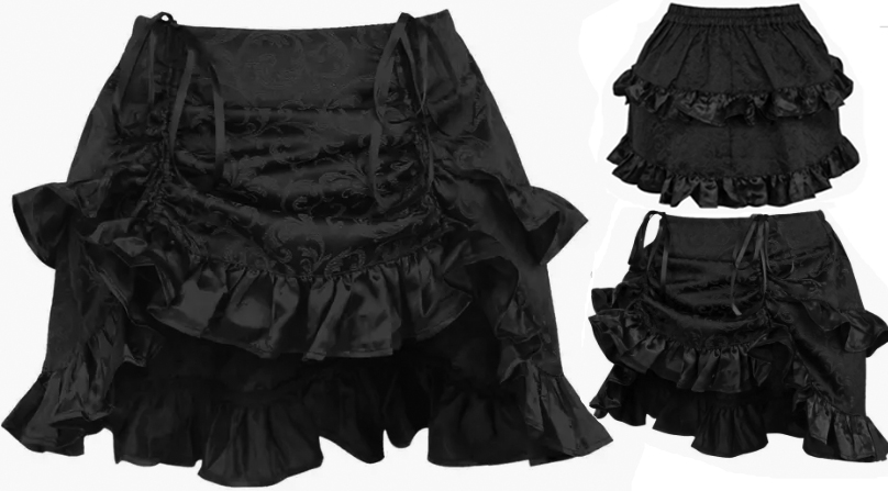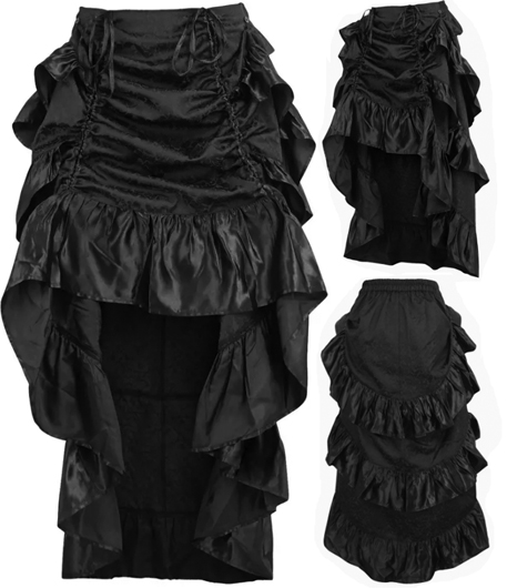 acc287 - Daisy black brocade adjustable high low long bustle skirt. Medium/Regular size. $91.50