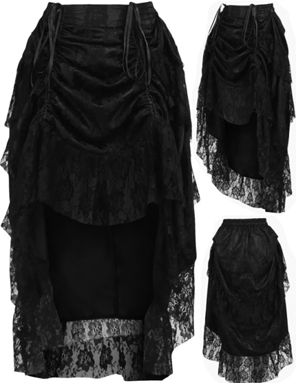 acc292 - Daisy black lace adjustable high low bustle skirt. Medium/Regular size. $91.50