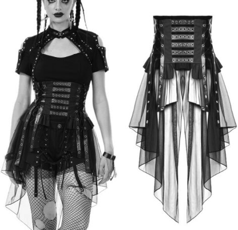 cw098 Dark in Love Industrial grommet lace up corset skirt. Medium $69.50
