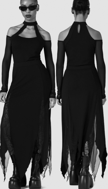 ls195-Lip Service black Webutante long spiderweb skirt. $55.50.