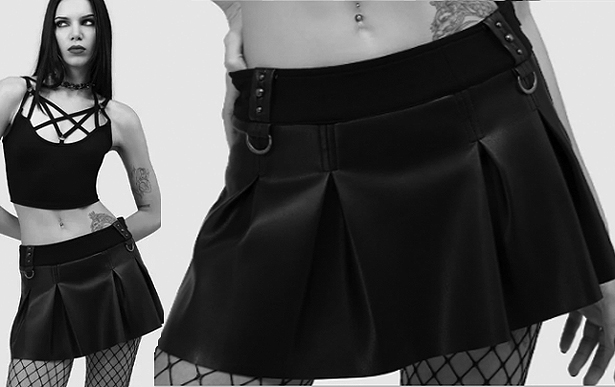 ksra004907 Killstar black poly elastane No Lip pleated o-ring mini skirt. Was $51.50 SALE $41.50