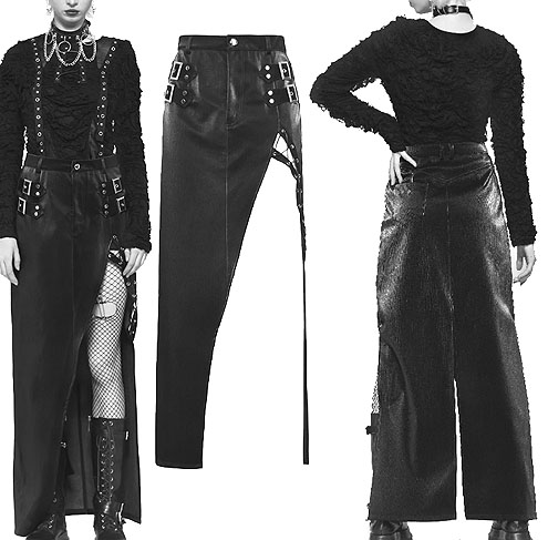 wq687 -Punk Rave punk cross hollowed slit skirt with buckle waist, square cut outs. Medium. $181.50