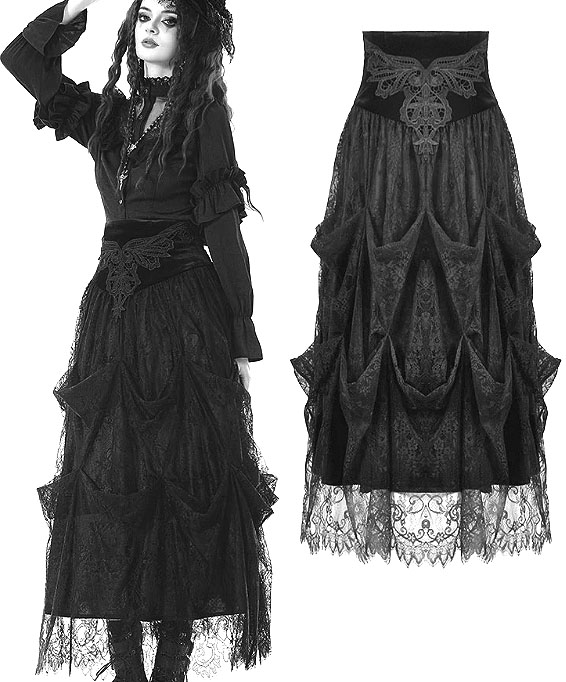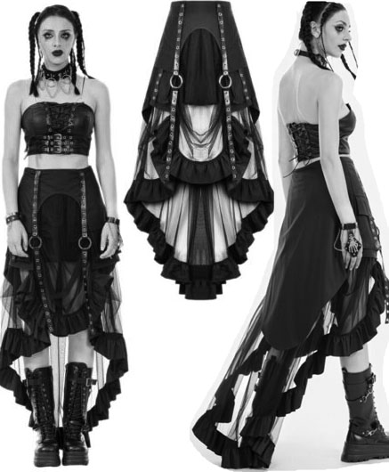 kw293-Dark in Love Gothic punk vintage court elastic waist high low skirt. $99.50.
