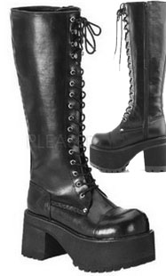 ranger302 - Pleaser/Demonia black pu lace up 3 3/4 inch block heel platform women's Ranger knee boot with side zip. Womens 9. $123.00